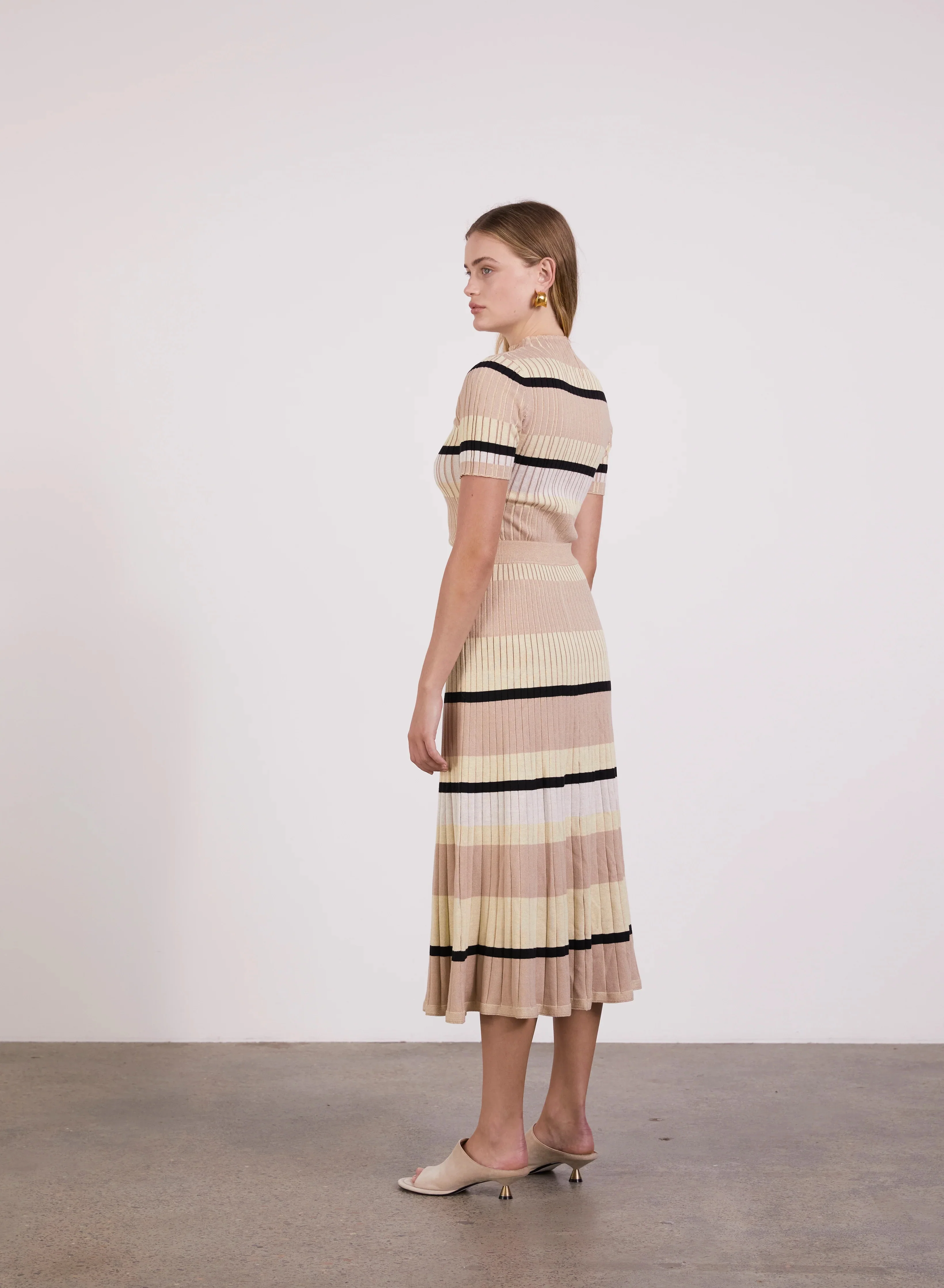 An essential starts with thoughtfully chosen materials. Knitted from a soft 100% cotton that gently hugs the frame, this tee features a high neckline and ribbed texture. Layer yours peeking beneath a tailored jacket or accentuate the colour with a coordinating or contrasting knit skirt.