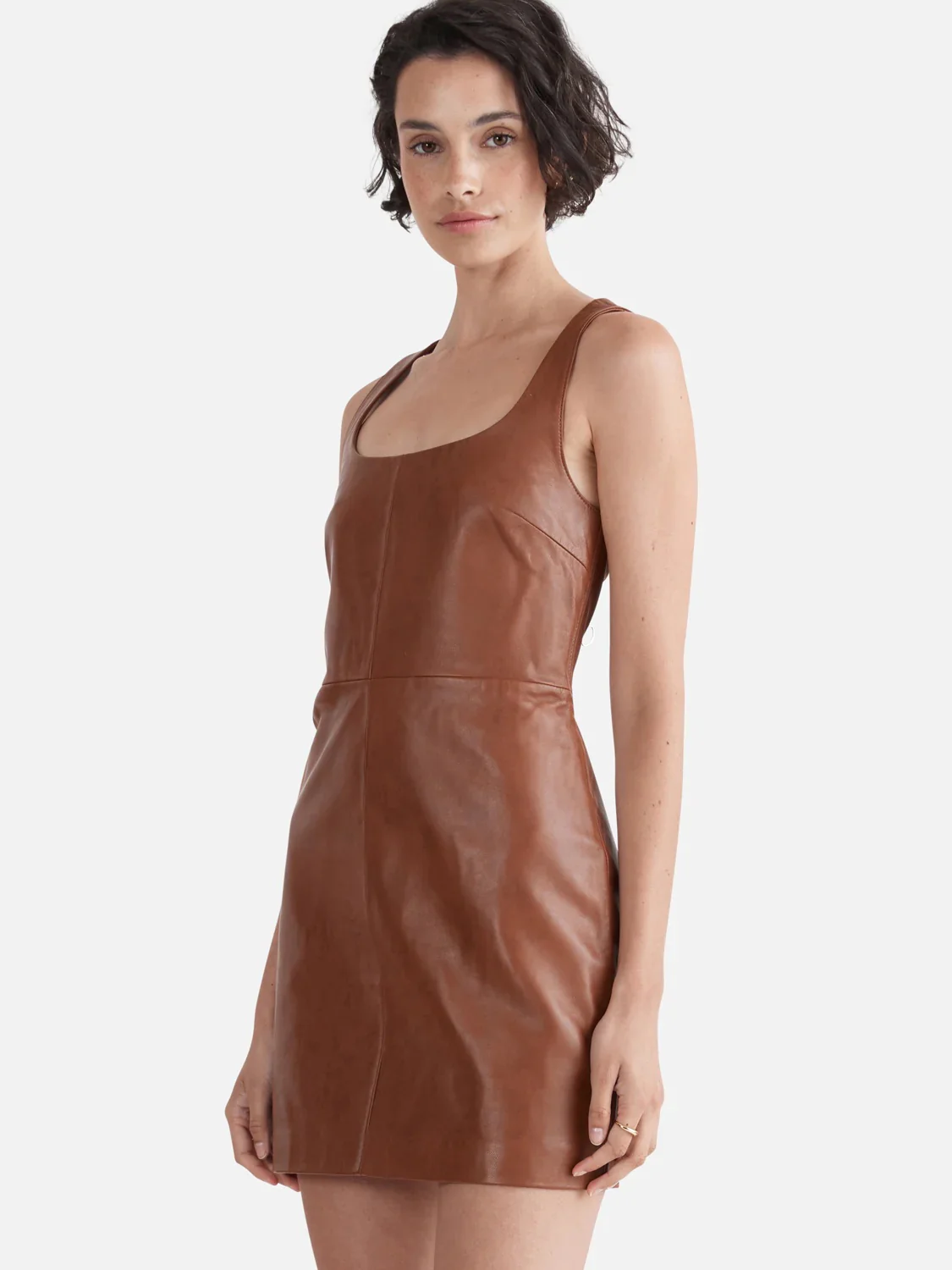The Delaney Leather Mini Dress in a rich whiskey tone has been designed to stand the test of time. Crafted from out signature 100% New Zealand Lambs Leather, this dress has been hand tailored to perfection with waist seam detailing, this mini dress offers timeless elegance with a modern twist.