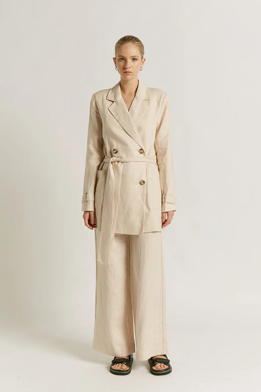 The Fleur Linen Pants are constructed using 100% premium linen, that's sure to keep you cool on a summer day. Cut in a breezy relaxed silhouette, they have a flattering high rise waist, belt loops and side pockets. A classic pair for summer.