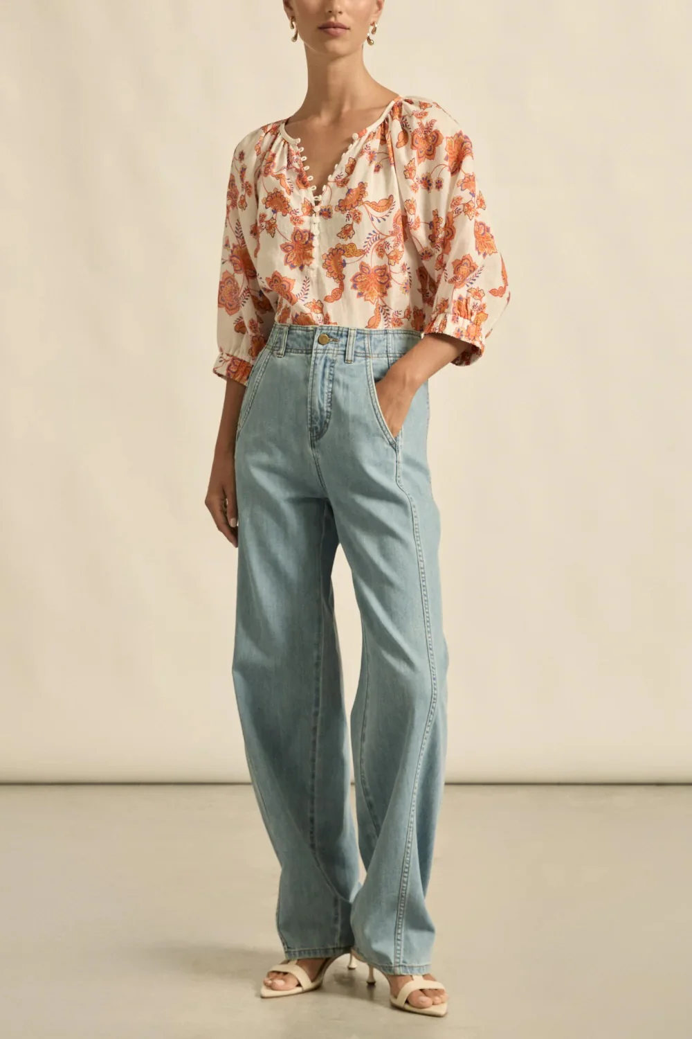 A fresh take on timeless denim, the Orchestrate Jean in Light Wash combines classic structure with modern detailing. Featuring a high-waisted, barrel-leg silhouette, this style is elevated by a subtle side seam detail, creating a flattering, elongating effect. see product details below.